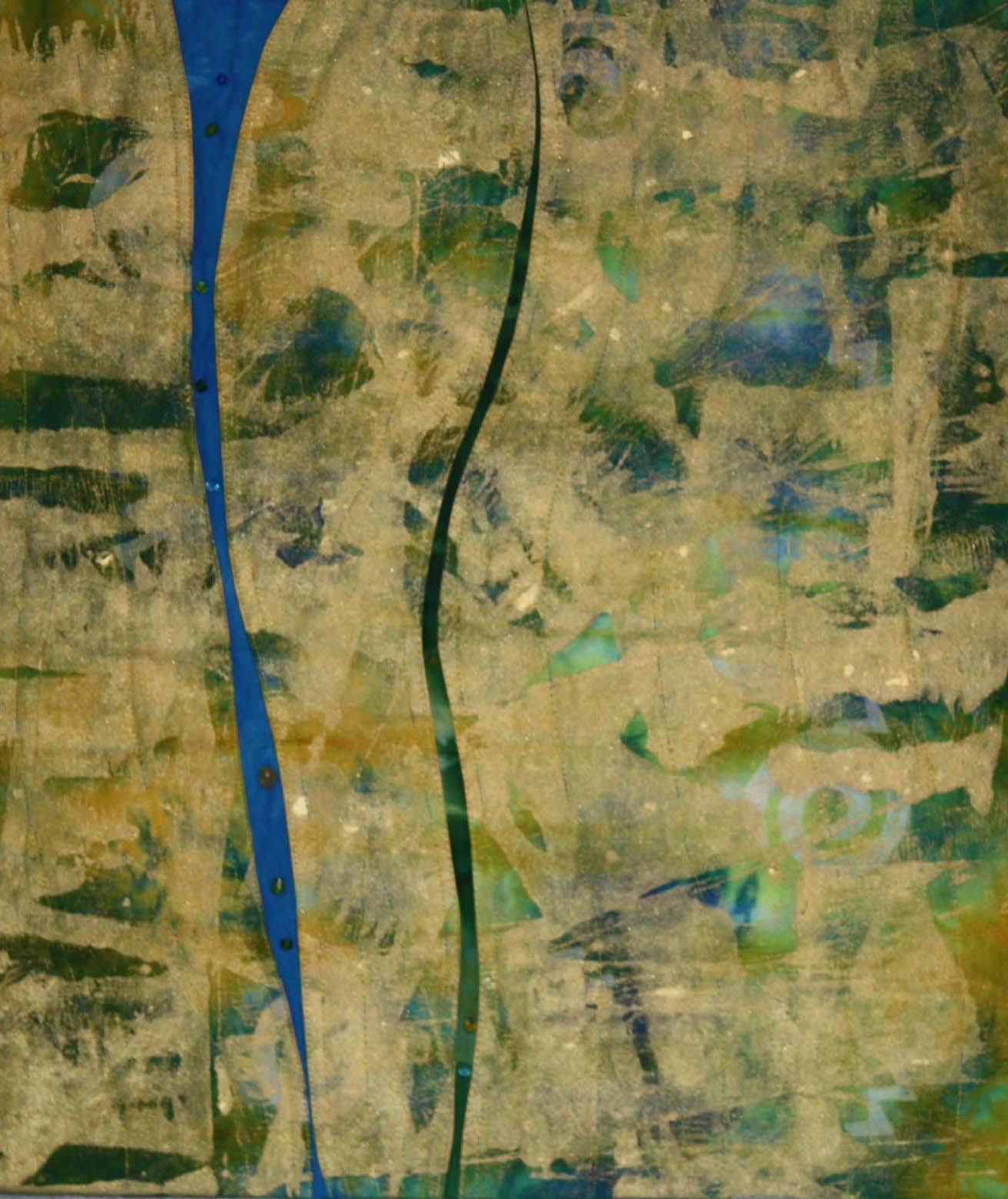 Torn Cotton and Polished Cotton – Machine Pieced and Quilted – Paints Added at the End