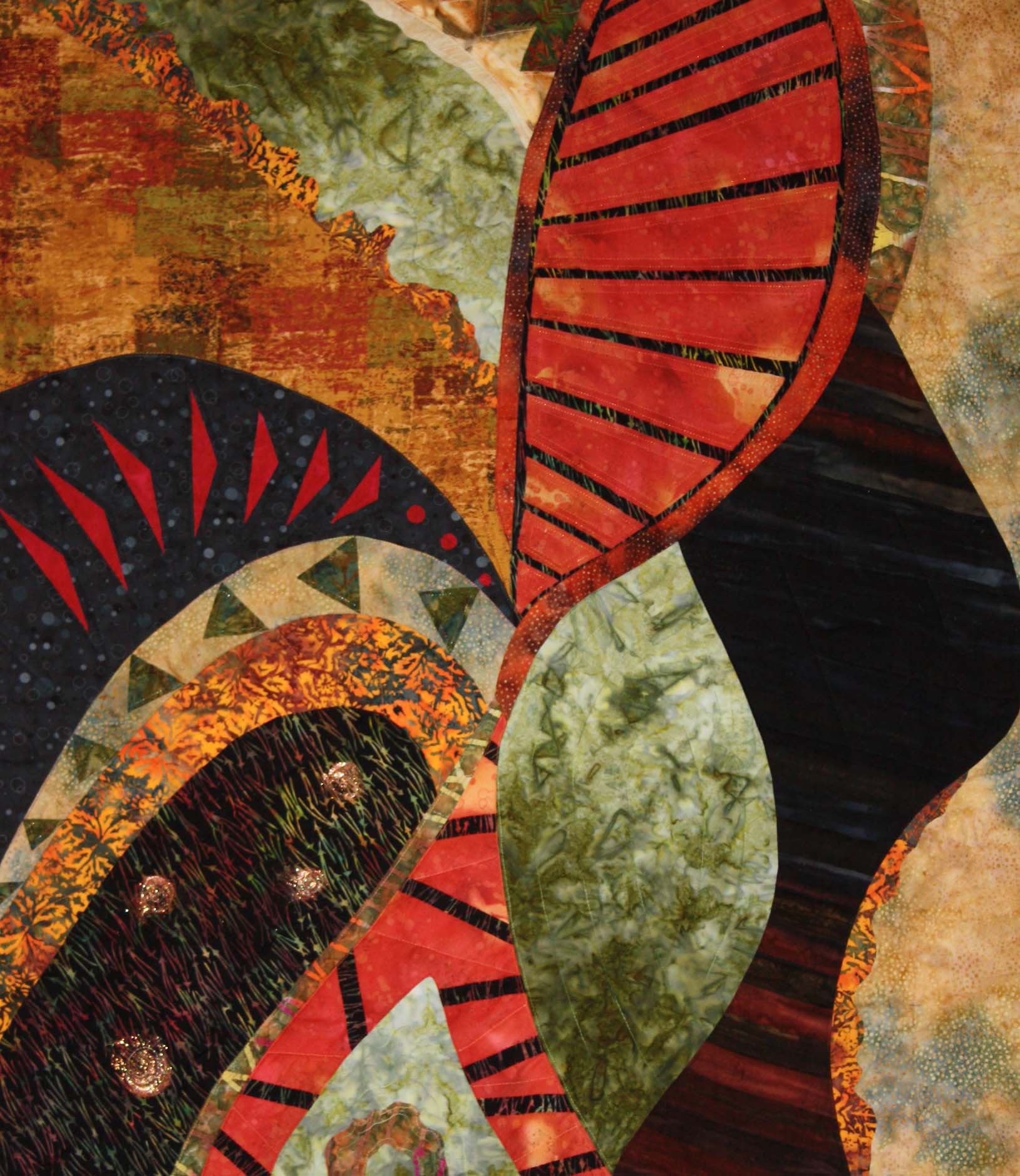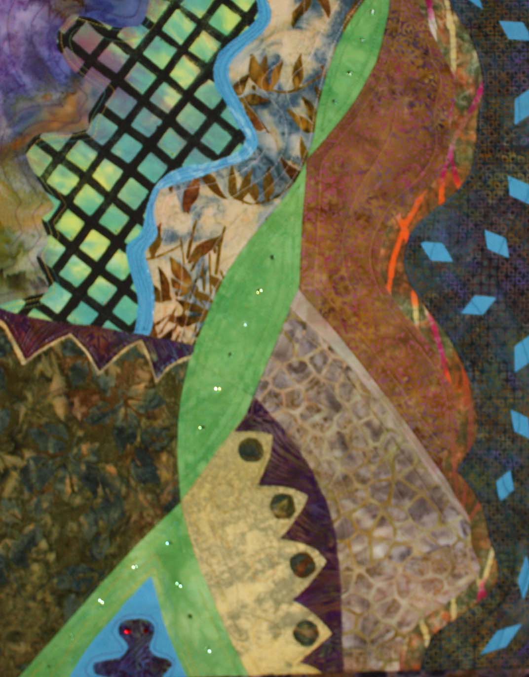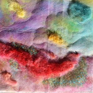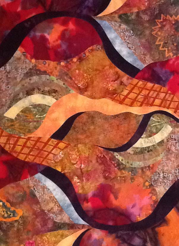 While recovering from hip replacement i am taking an online class from Susie Monday called “Art on the iPad”. Susie’s instructions are clear and I”m enjoying the class. The piece below was created by painting on plastic paste then laying the fabric on top and pressing the paint into the fabric. Using several art apps I created this piece-waiting for the piece to arrive from Spoonflower.